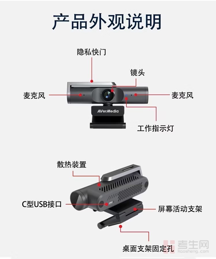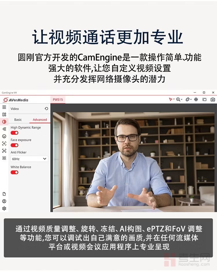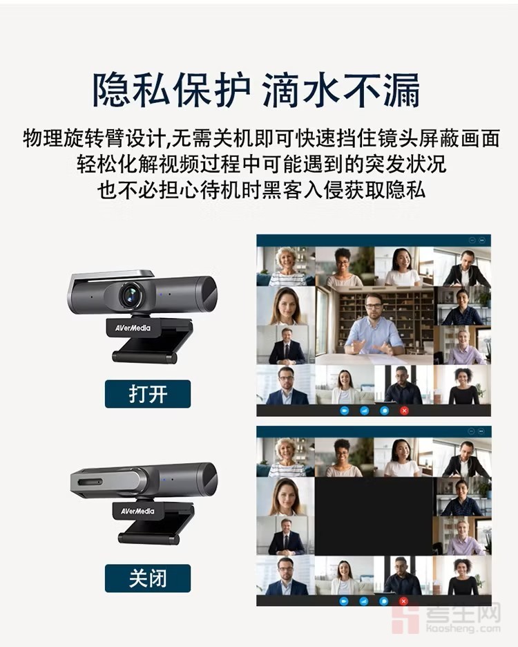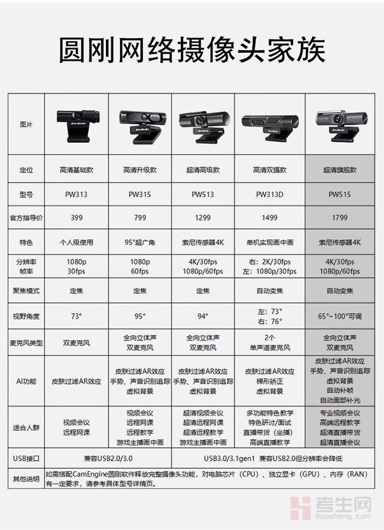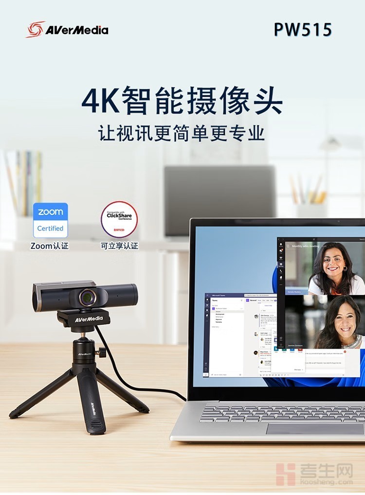 圆刚(AVerMedia) PW515 4K网络摄像头超高清直播100°广角电脑视频会议在线示教设备 4K